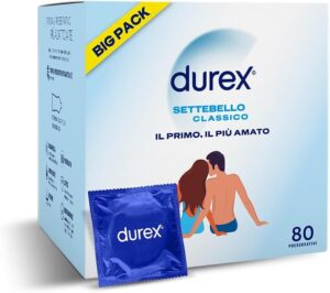Le Lot de 80 préservatifs Durex Settebello Classic Super-Big est un conditionnement économique du modèle classique de la marque, axé sur la sécurité, le confort et la simplicité.